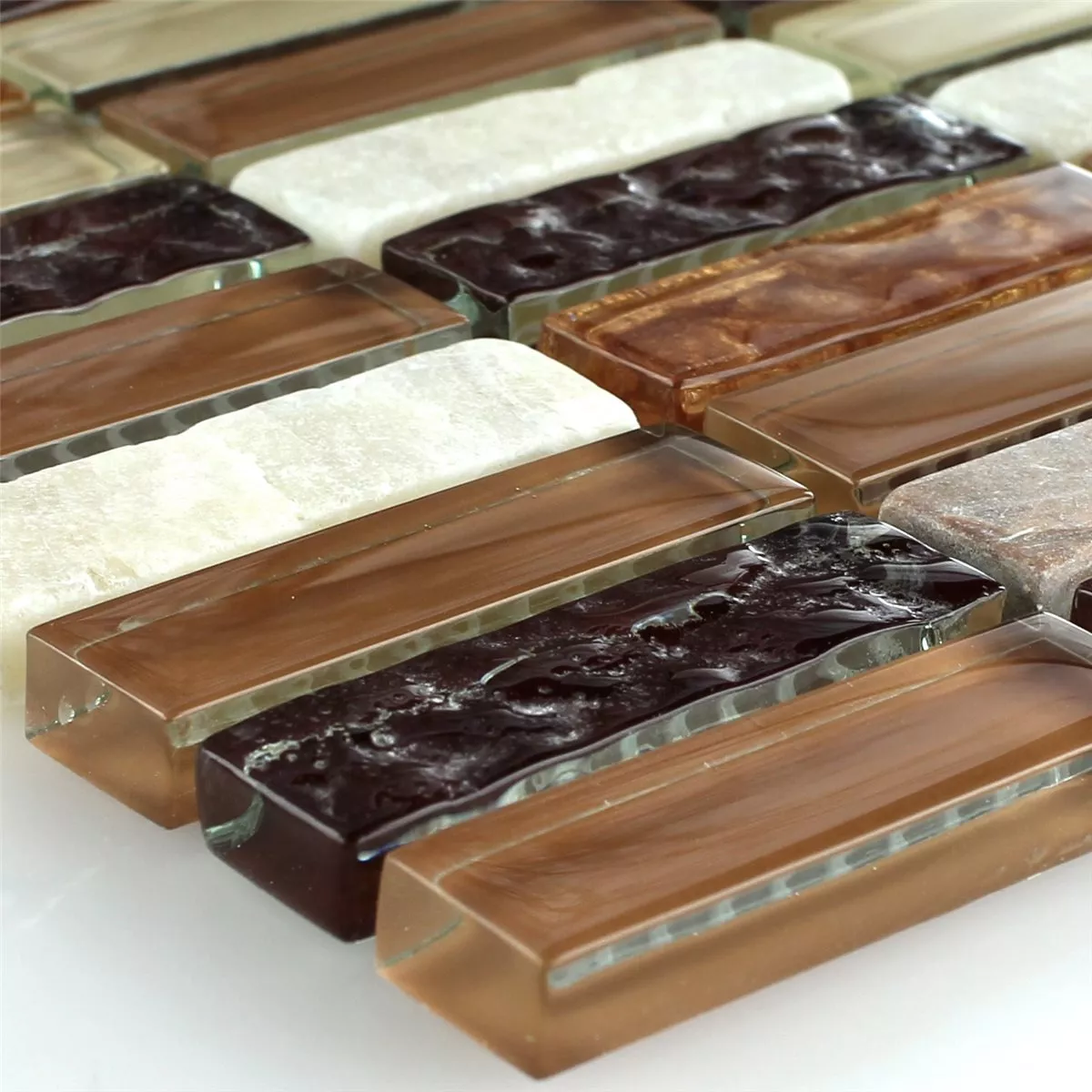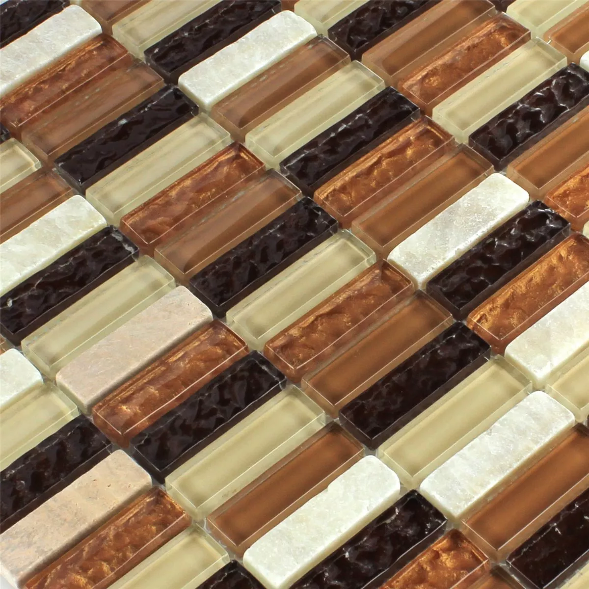 Azulejo Mosaico Onyx Vidro Haste Marrom Bege