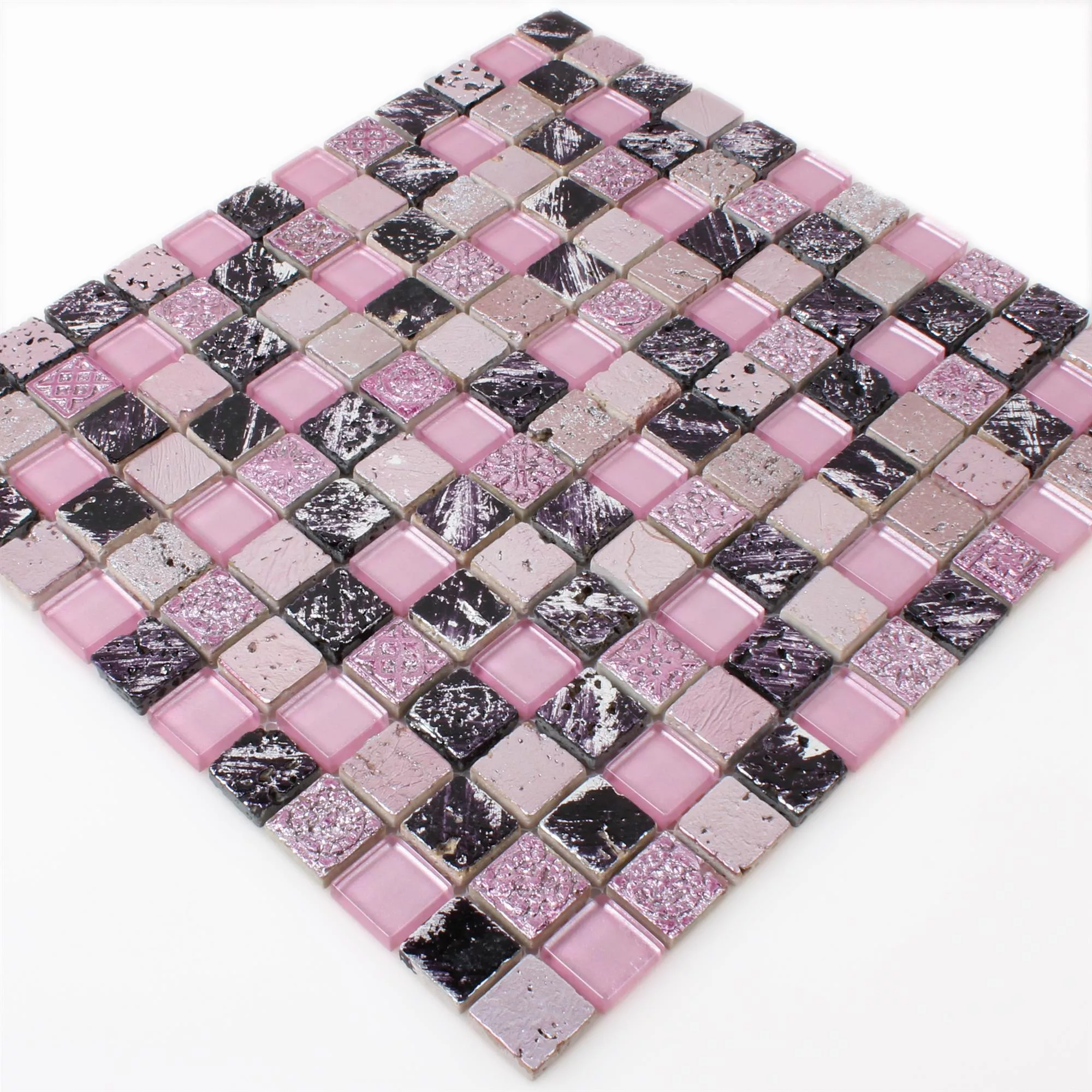 Os modernos mosaicos Glass Resin Stone Mix Colicos na cor rosa são feitos de pedra natural e abrem perspectivas completamente novas no design de interiores. Os ladrilhos de pedra natural com superfície de vidro e resina estão disponíveis nas versões brilhante e mate e podem ser exibidos com estilo no banheiro, na cozinha e na área de estar. O esquema de cores exclusivo e o acabamento de primeira classe são convincentes em todos os aspectos.