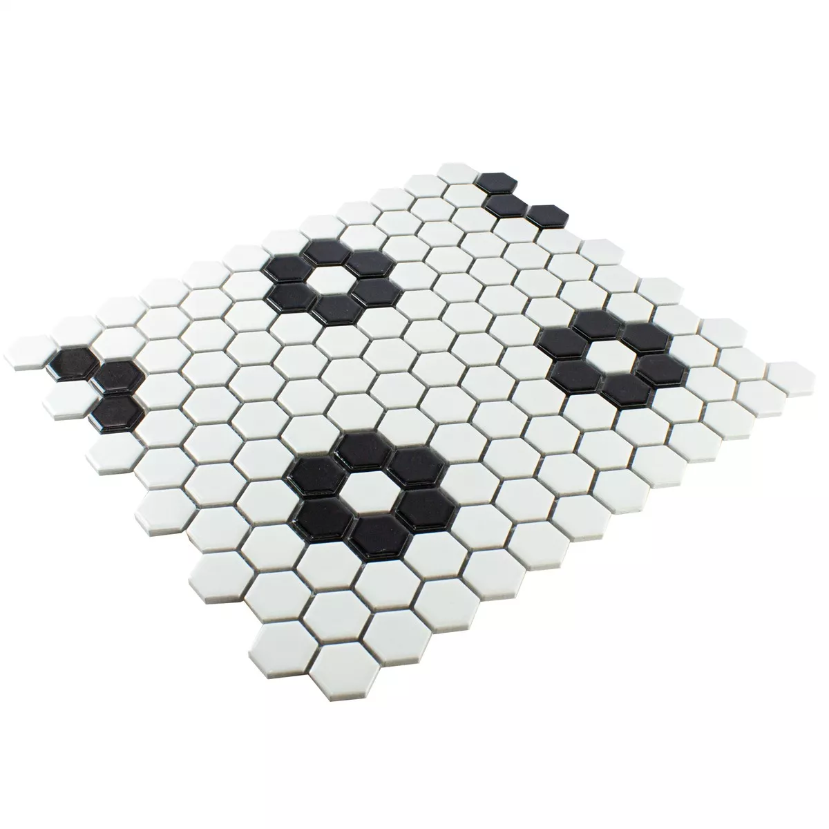 Cerâmica Azulejo Mosaico Carlsbad Flor Preto Branco