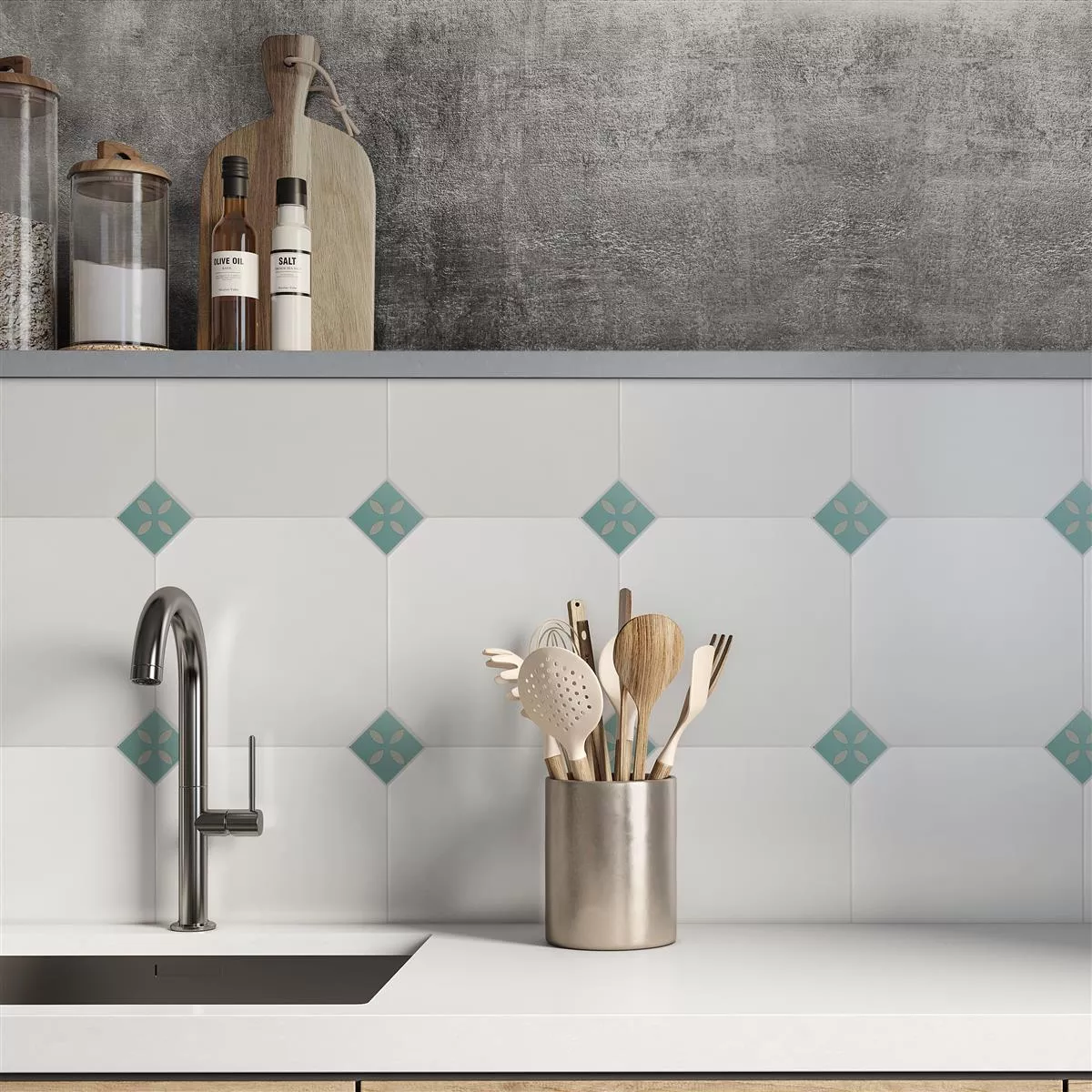 Ladrilhos de grés porcelânico Genexia Decor incrustação turquesa - detalhes em cores frescas com charme retrô