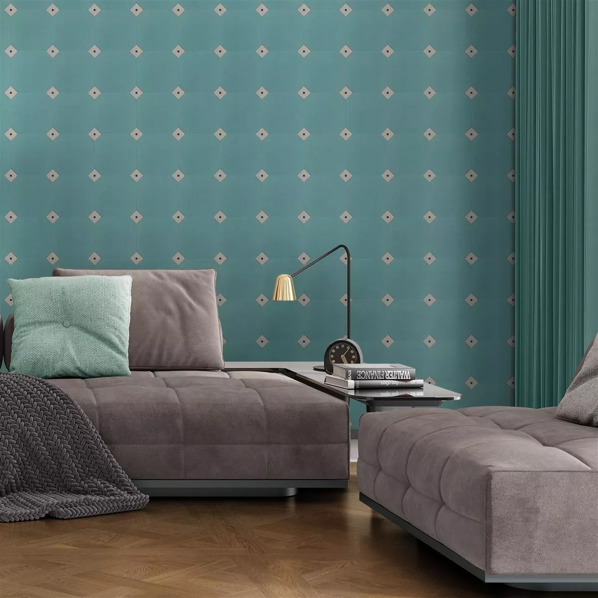 Dê aos seus quartos um design elegante e ao mesmo tempo a funcionalidade que você precisa com o porcelanato Genexia Uni Turquoise Octagon 20x20cm.