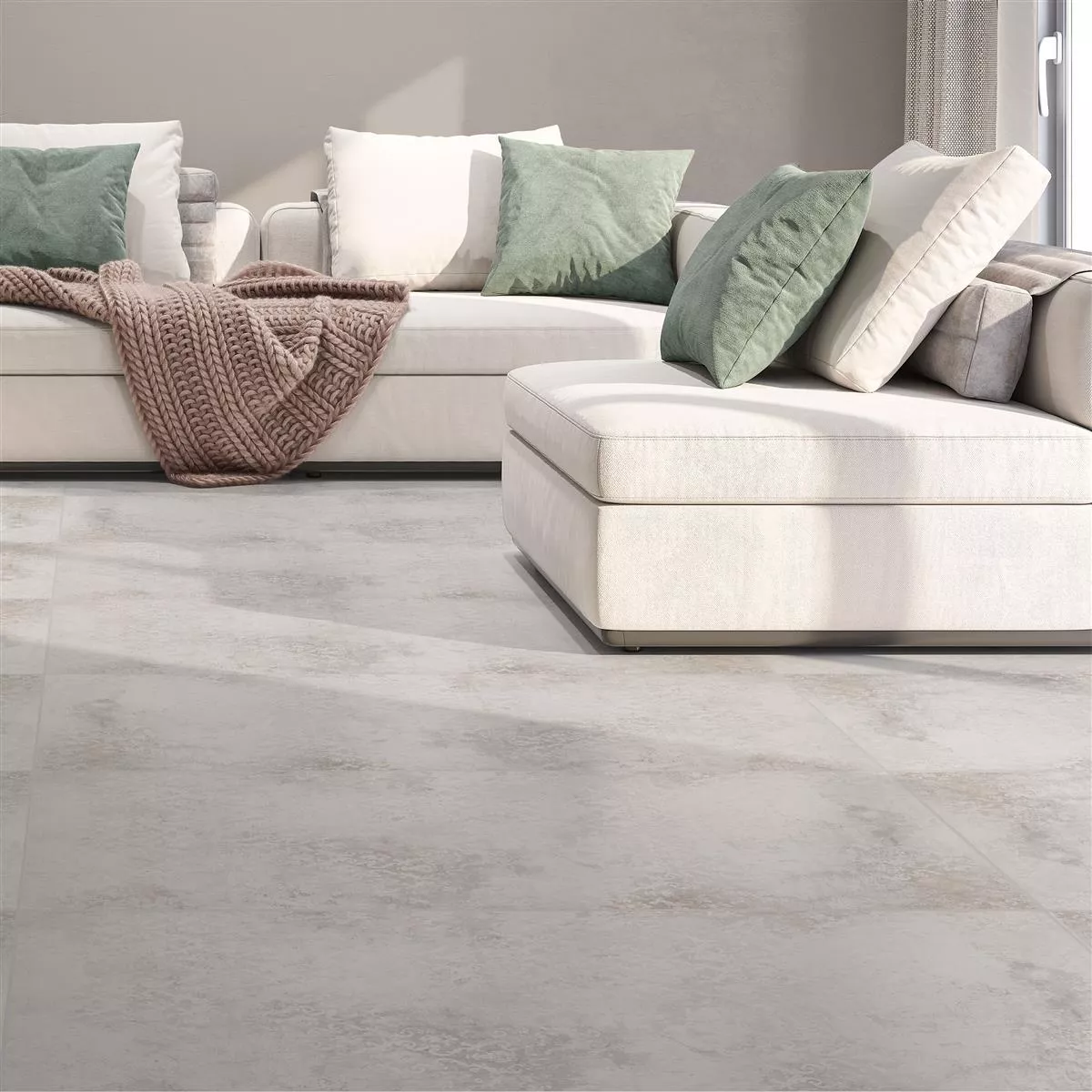 Estes grés porcelânico retificado no tamanho 60x120cm também são adequados para piso radiante. Uma embalagem cobre 1,44m² e pesa 26,36 kg, são robustas e fáceis de manusear. Experimente beleza e funcionalidade atemporais em um só piso Poetic.