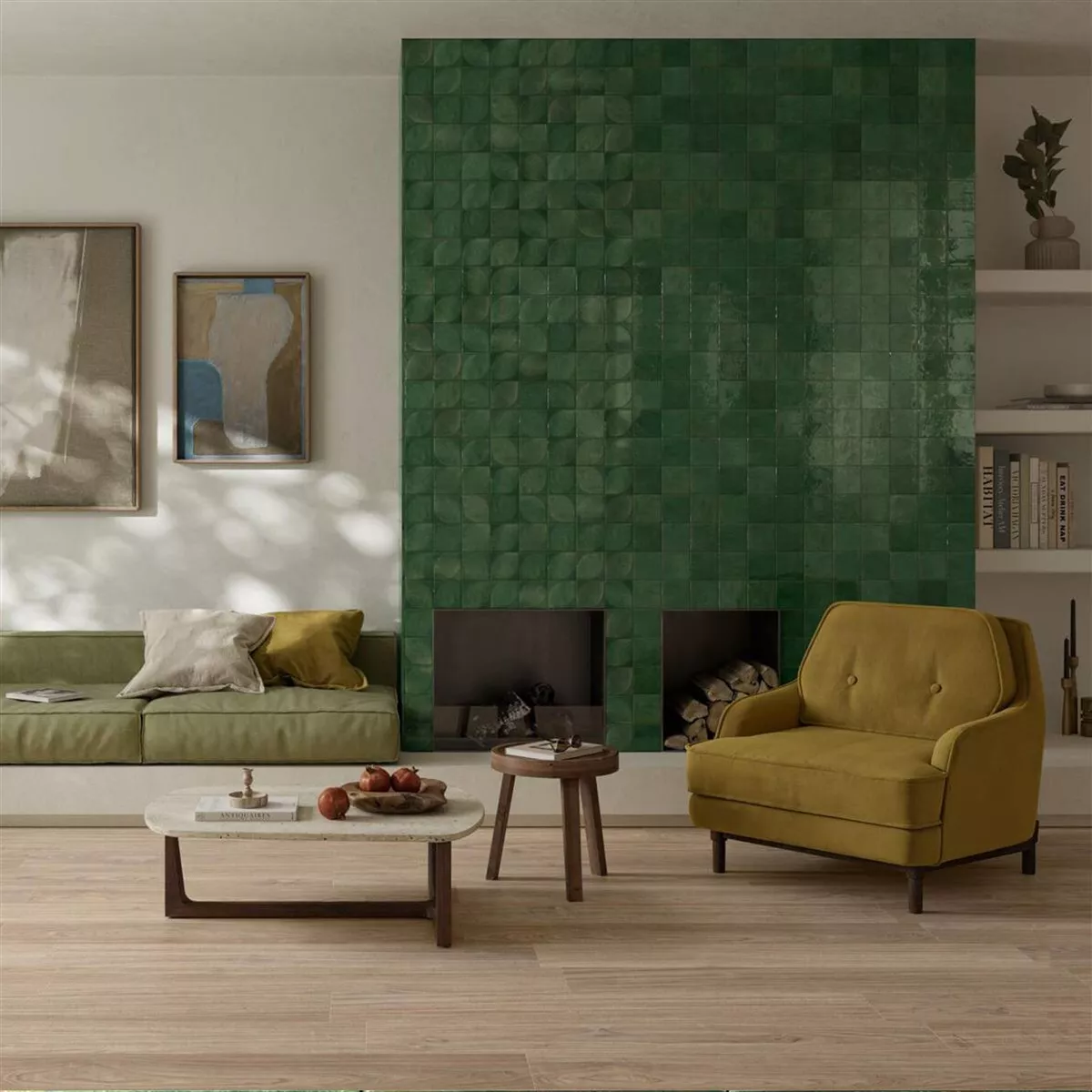 Maryland Grün Glänzend 3D Strukturiert 10x10 cm