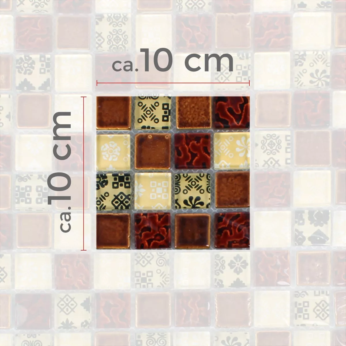 Padrão de Azulejo Mosaico Resina Vidro Belmont Vermelho Bege