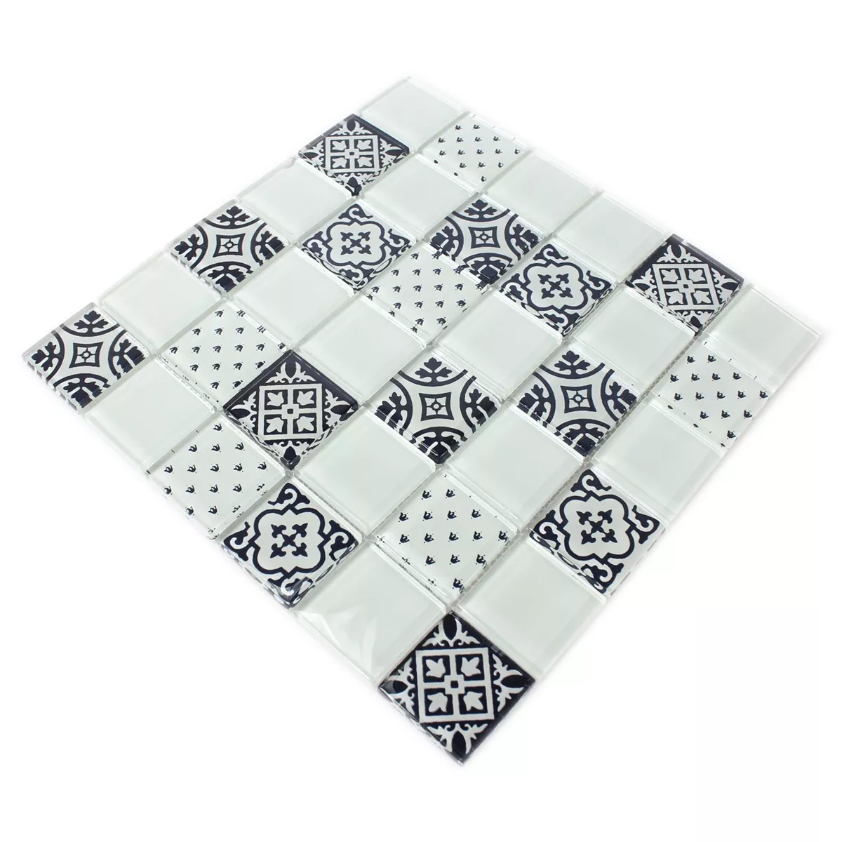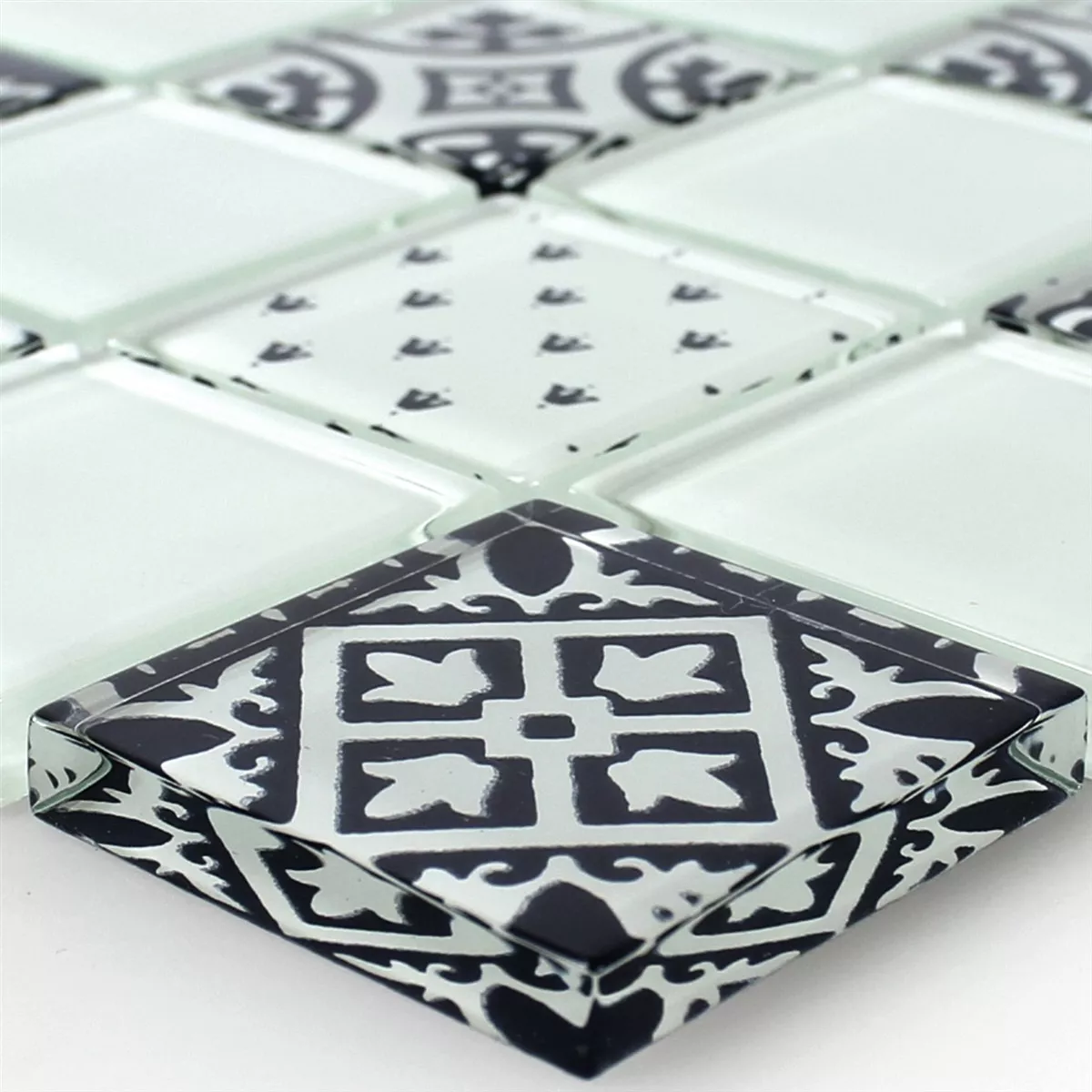 Padrão de Azulejo Mosaico Vidro Barock Ornamento Branco