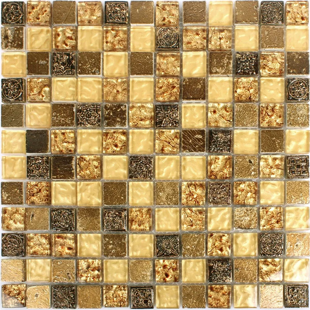Padrão de Azulejo Mosaico Vidro Pedra Natural Maya Ouro