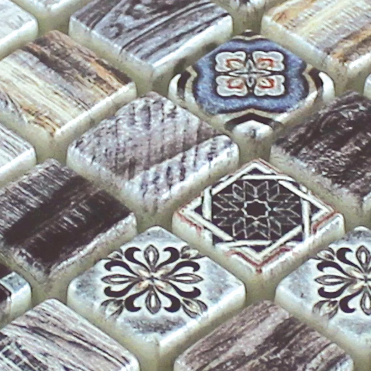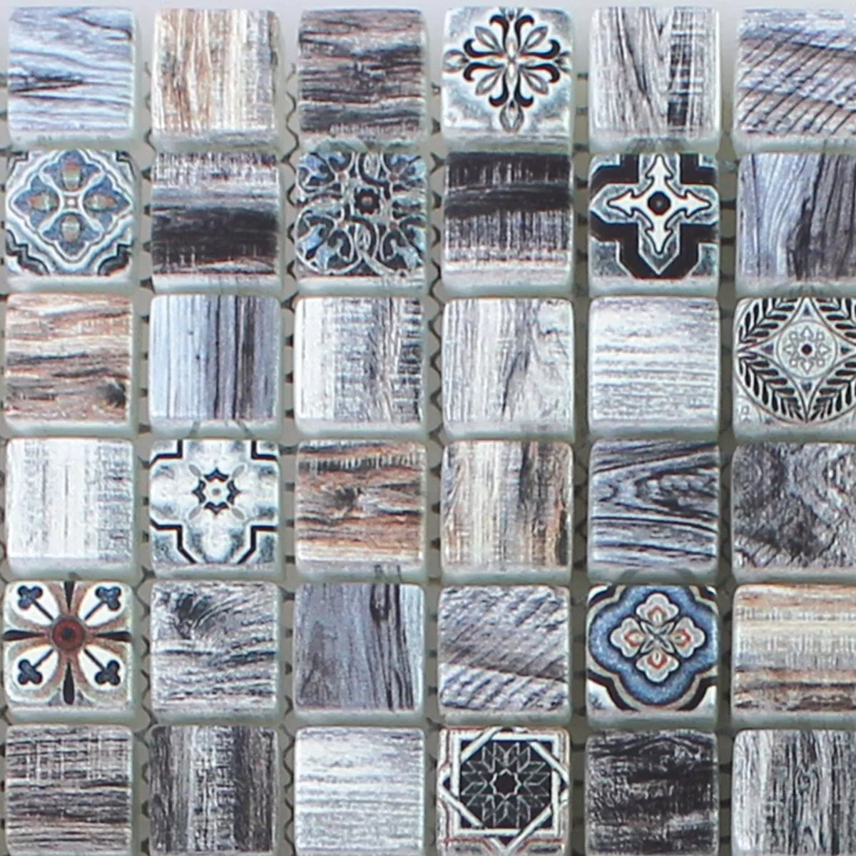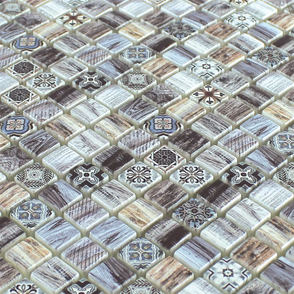 Padrão de Mosaico De Vidro Aparência de Madeira Azulejos Vision Cinza Escuro