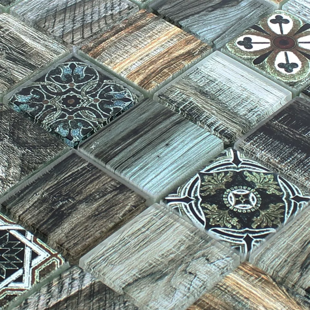 Padrão de Mosaico De Vidro Azulejos Aparência de Madeira Makarska Marrom Verde