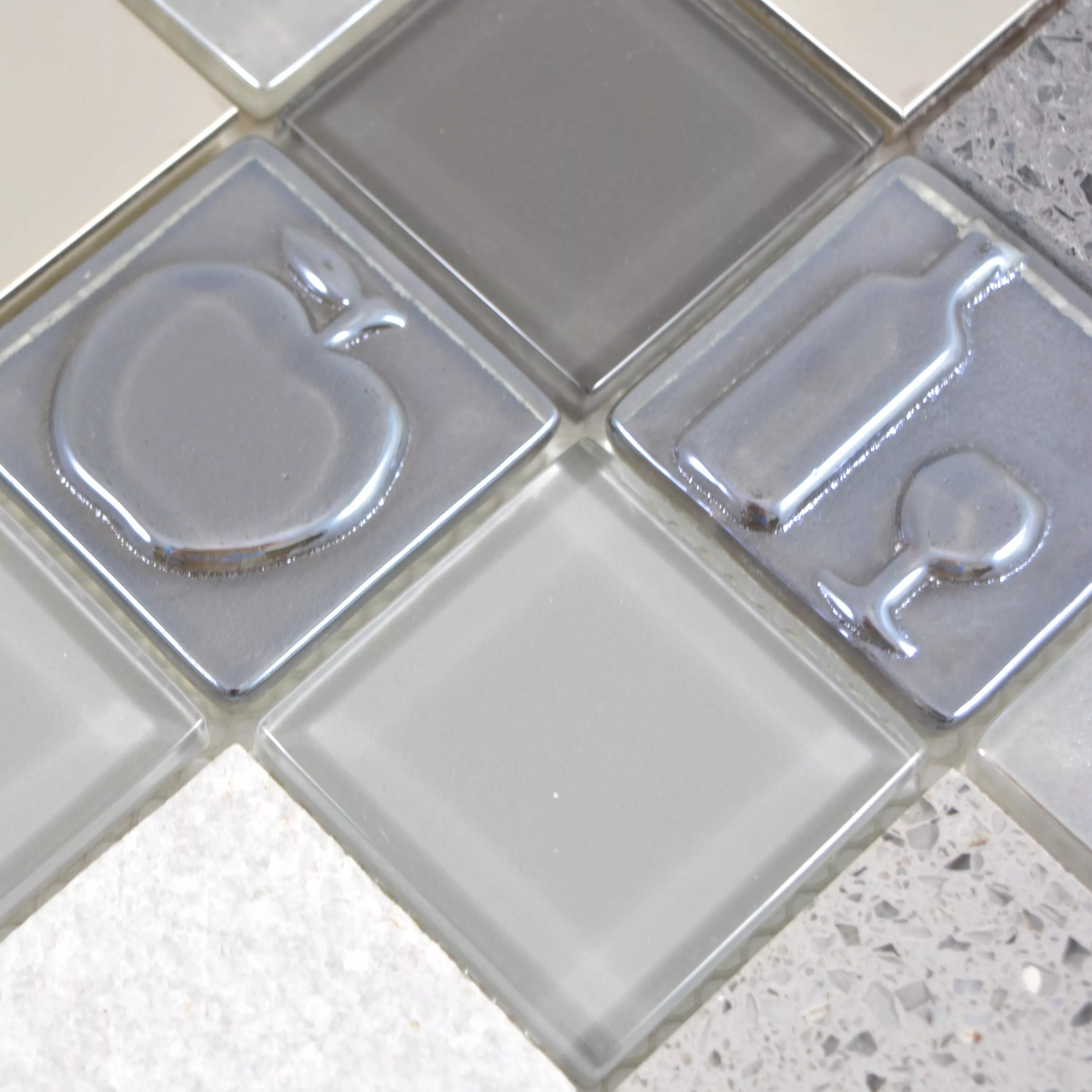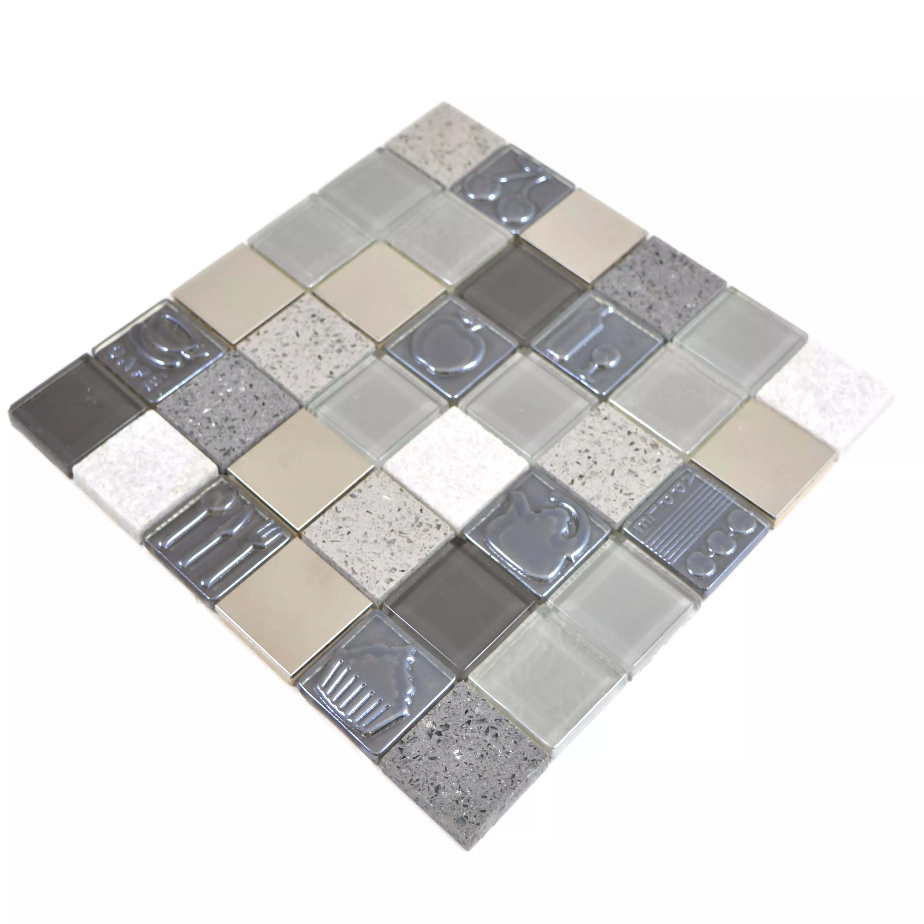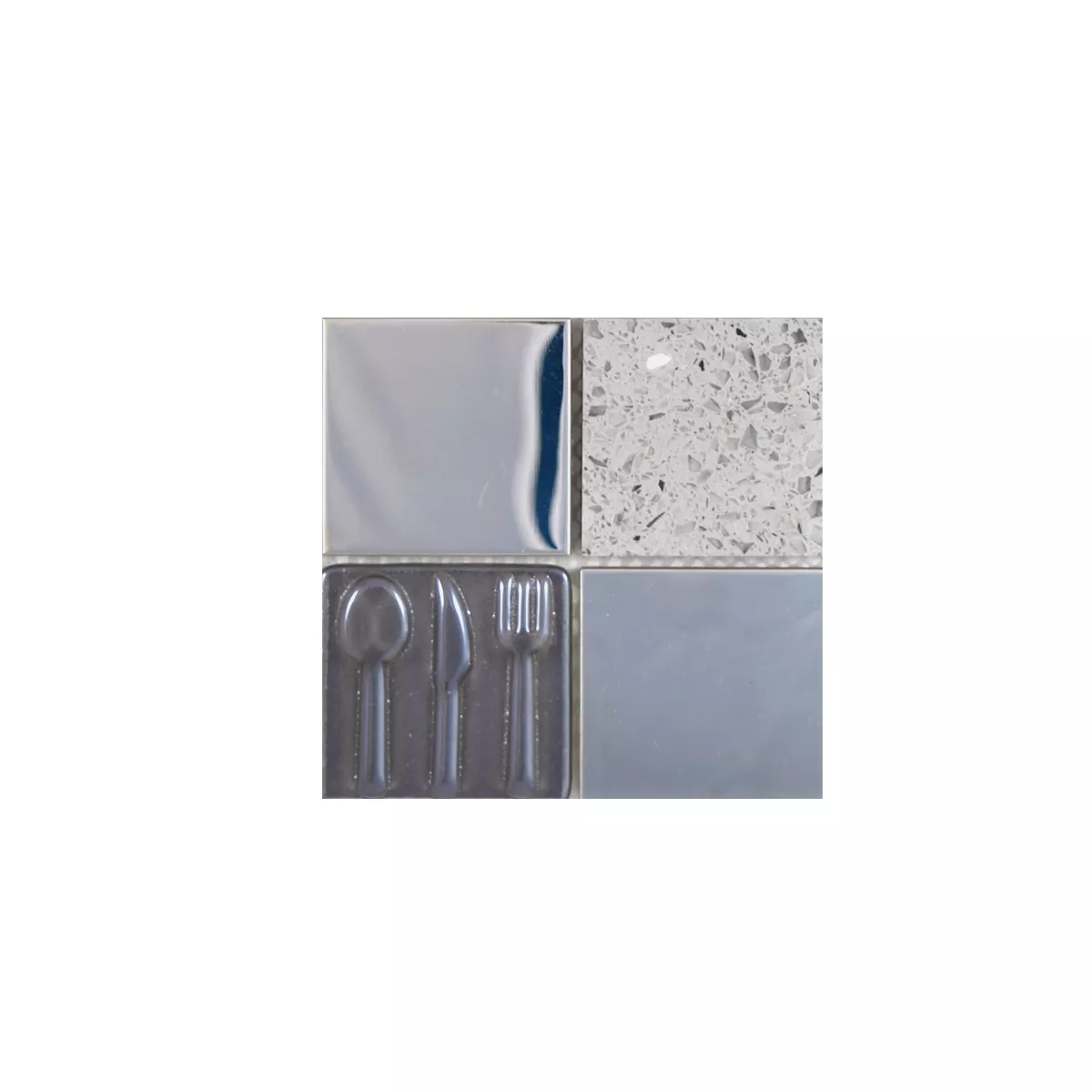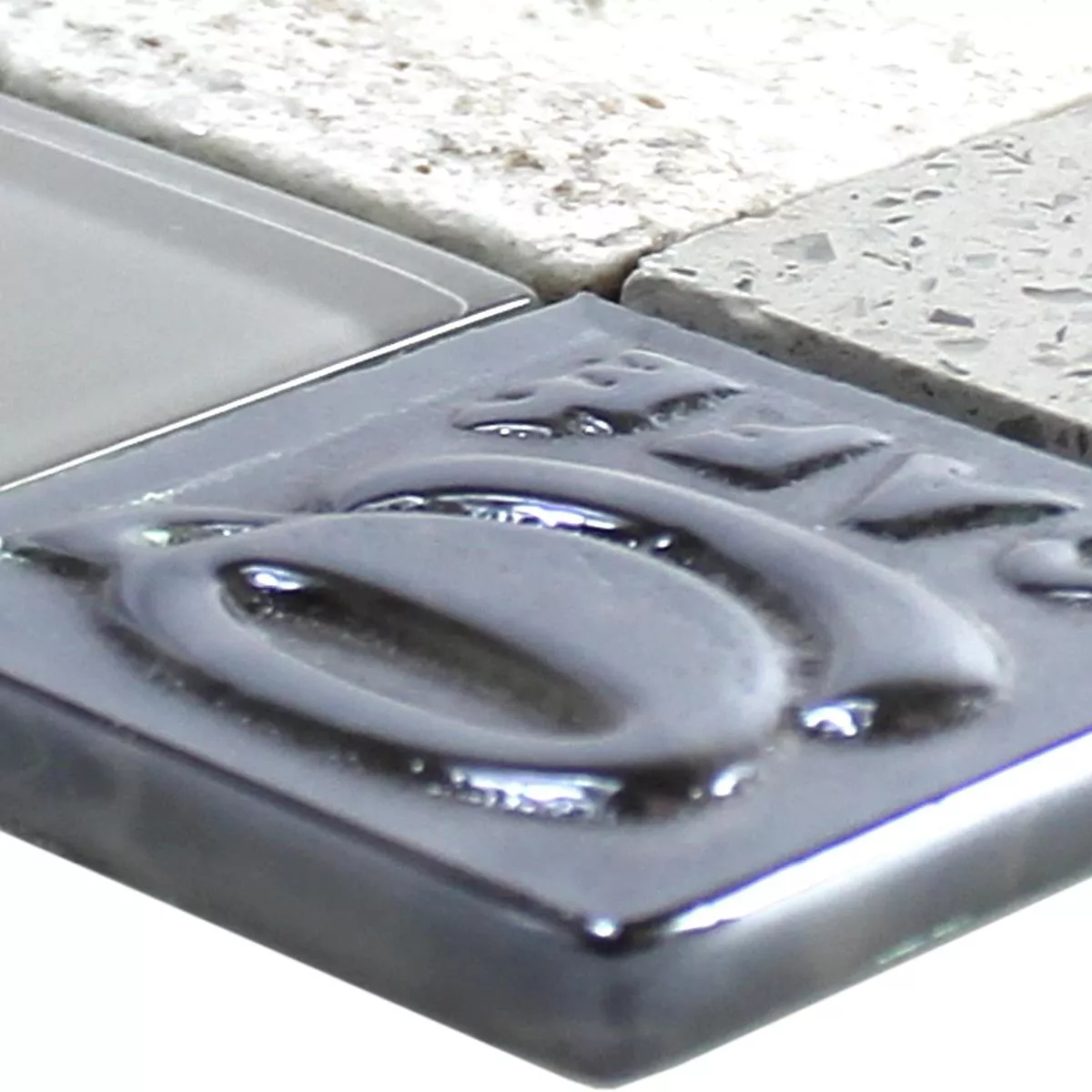 Padrão de Vidro Aço Inoxidável Pedra Natural Azulejo Mosaico Emporia Cinza Prata