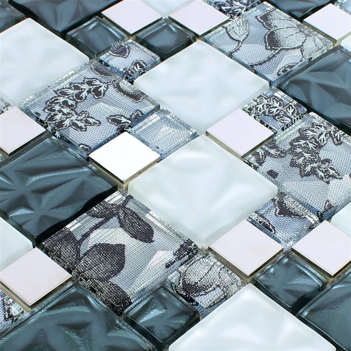 Padrão de Vidro Metal Aço Inoxidável Azulejo Mosaico Zadar Cinza Azul