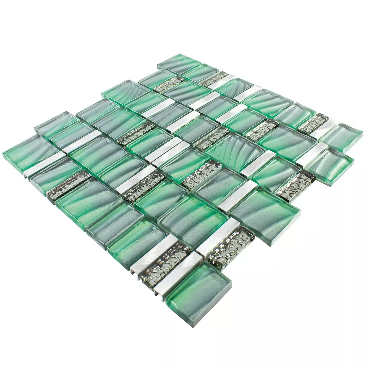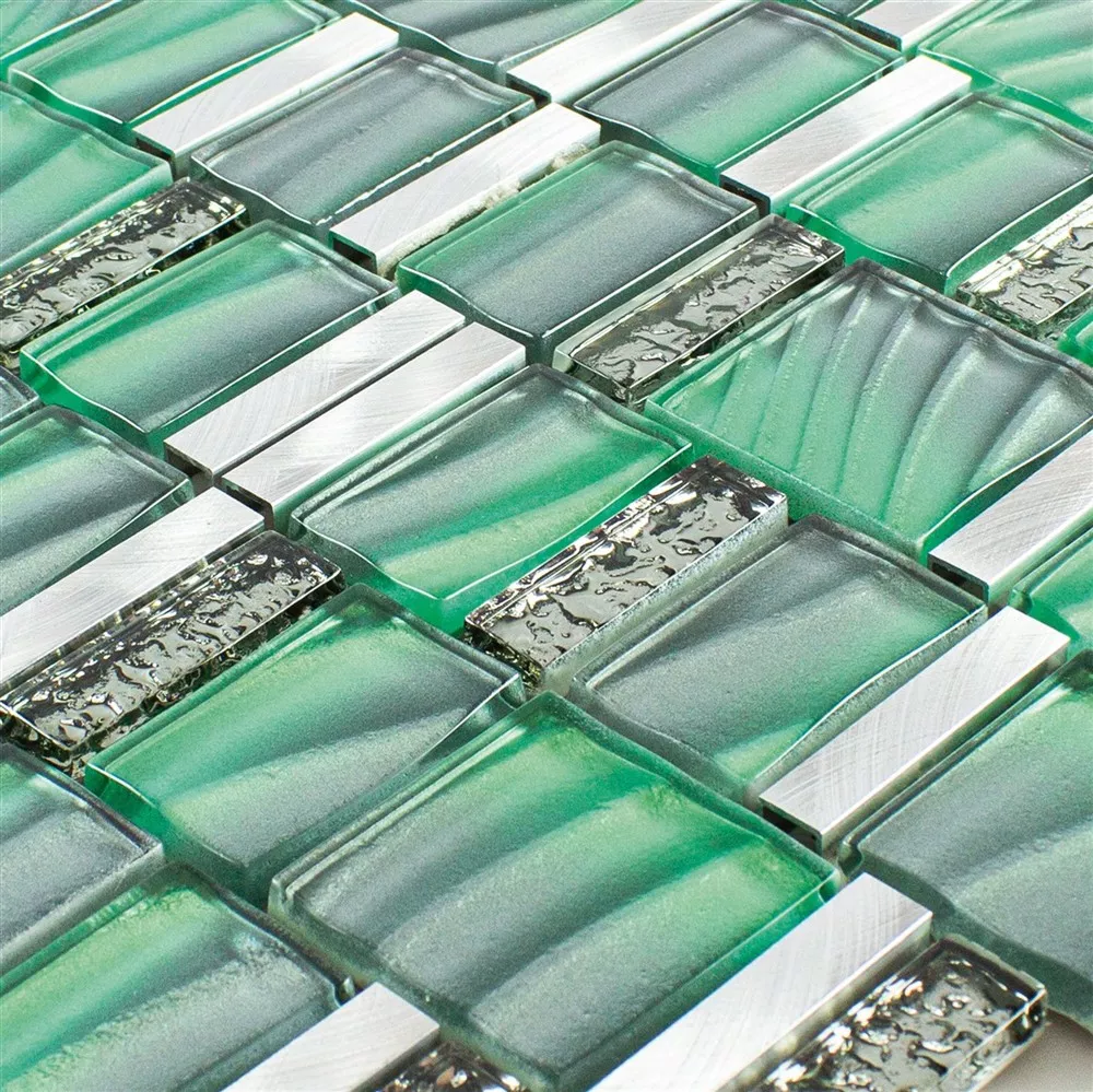 Padrão de Vidro Metal Azulejo Mosaico Union Verde Prata