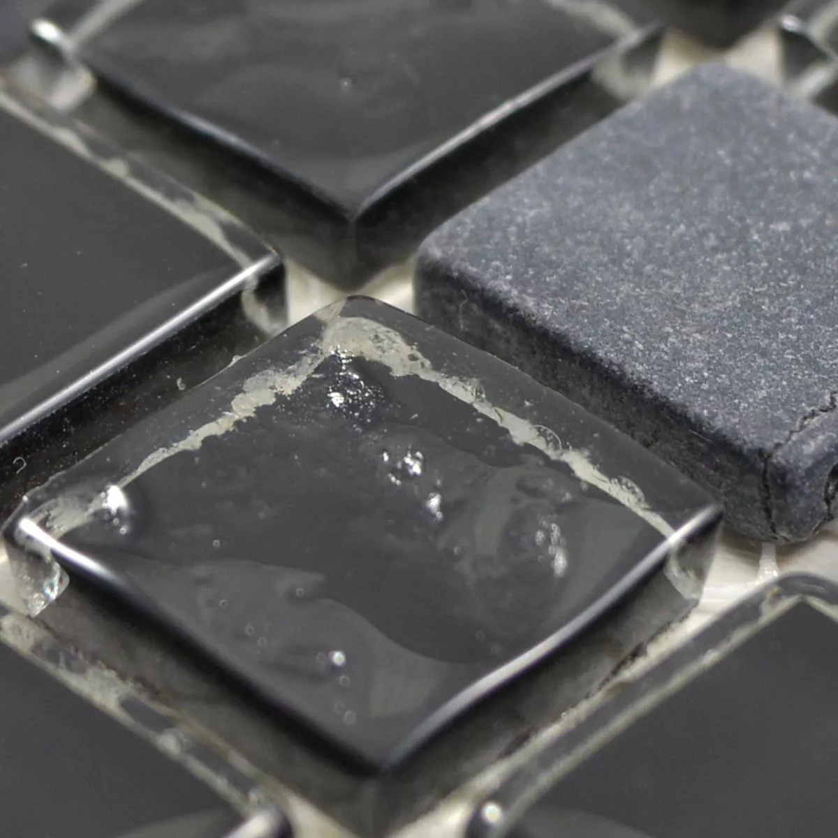 Padrão de Vidro Pedra Natural Azulejo Mosaico Zekova Preto Cinza