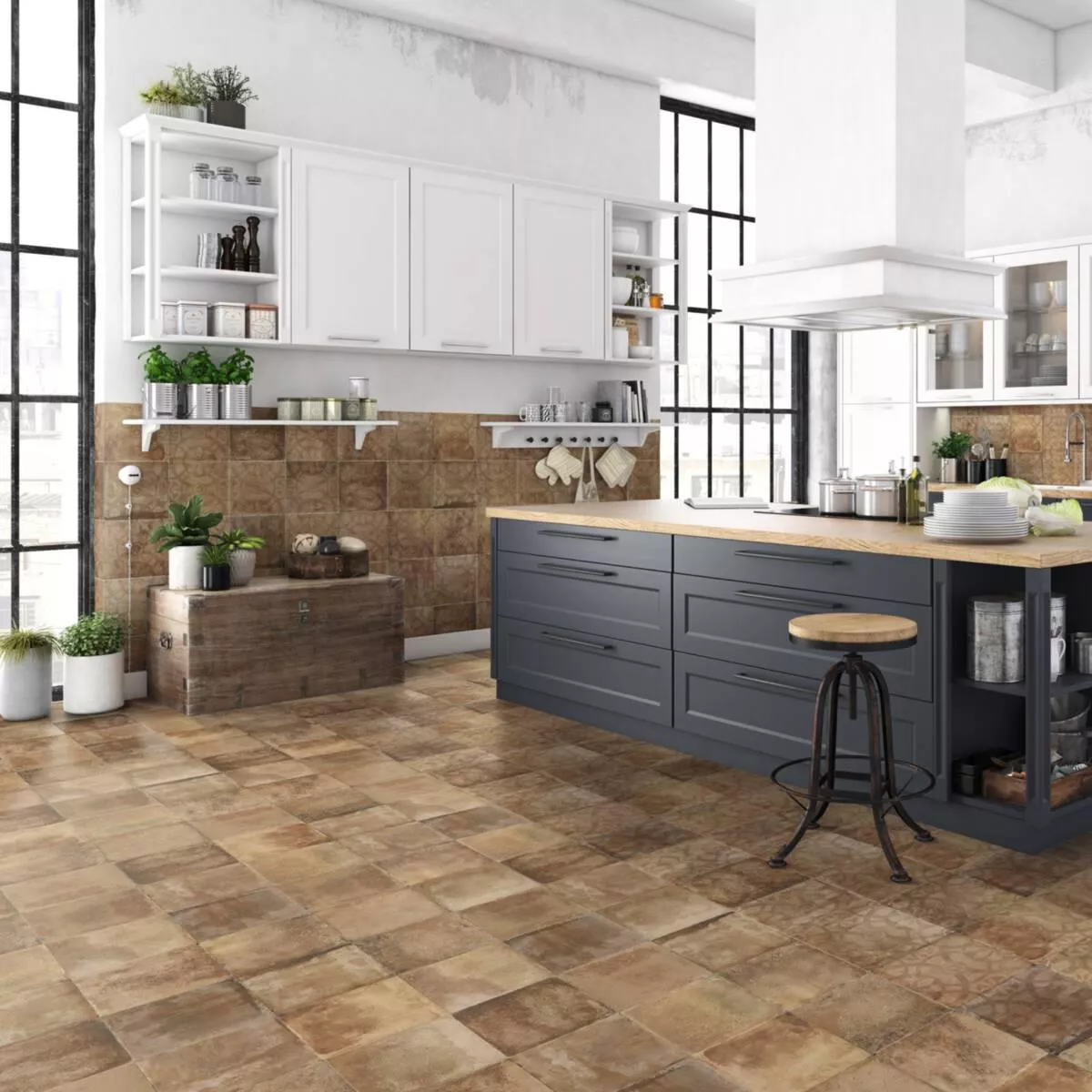 Esses ladrilhos de porcelanato podem ser usados tanto como revestimento de piso quanto de parede, sendo ideais para revestir a parede da pia da cozinha ou para decorar banheiros.