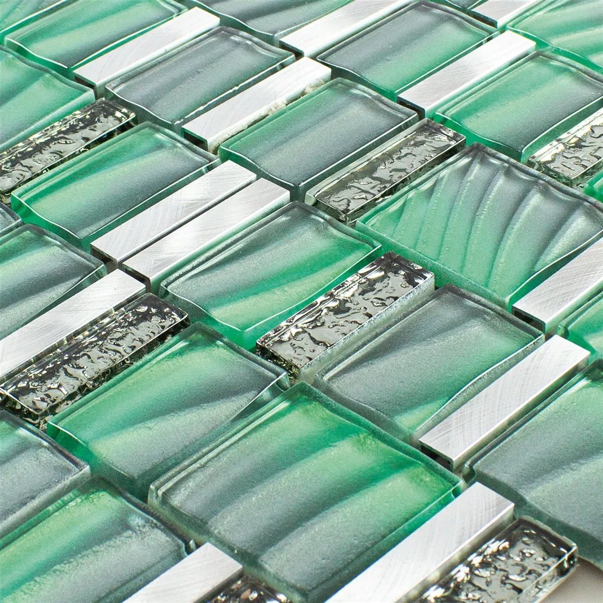Vidro Metal Azulejo Mosaico Union Verde Prata