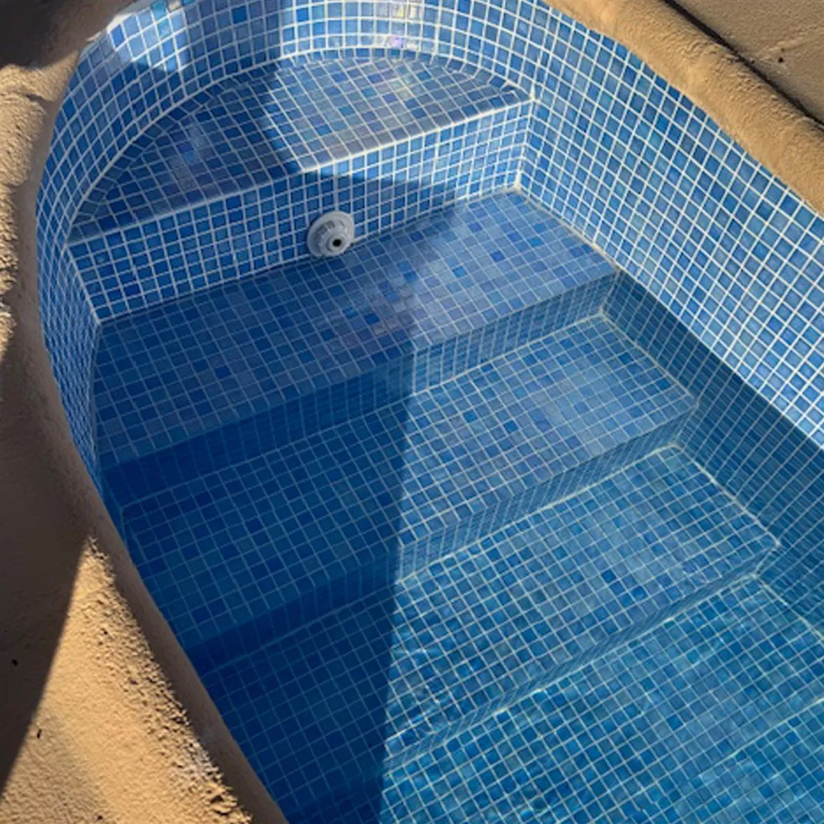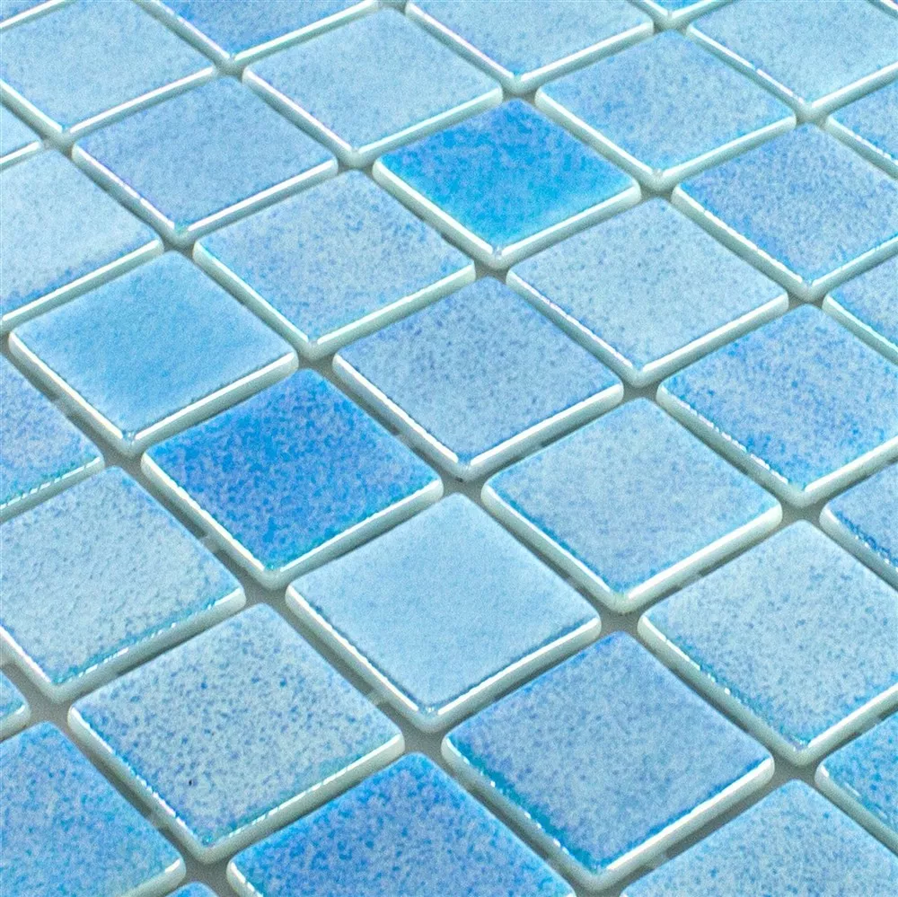 Com a sua superfície brilhante em madrepérola, o mosaico confere à piscina ou piscina um aspecto atraente. Também pode ser utilizado como revestimento de parede ou piso em outras áreas úmidas, como chuveiros, banheiros ou cozinhas. O mosaico é resistente ao gelo e também pode ser utilizado em climas mais frios.